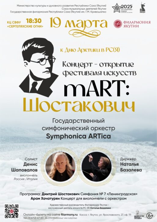 В День Арктики, в свой день рождения, Государственный симфонический оркестр 🎻 Symphonica ARTica под управлением заслуженного деятеля искусств РС(Я) 🔸 Натальи Базалевой представит легендарную Симфонию № 7 Дмитрия Шостаковича и Концерт для виолончели с оркестром Арама Хачатуряна.