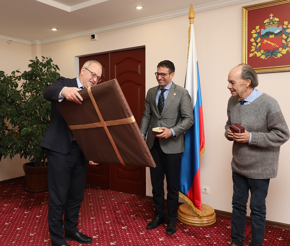 Сегодня в администрации Владикавказа состоялась встреча с делегацией из Италии. Город посетили мэр города Градара Филиппо Гаспери и представитель МИД Южной Осетии в Италии Мауро Мурджа