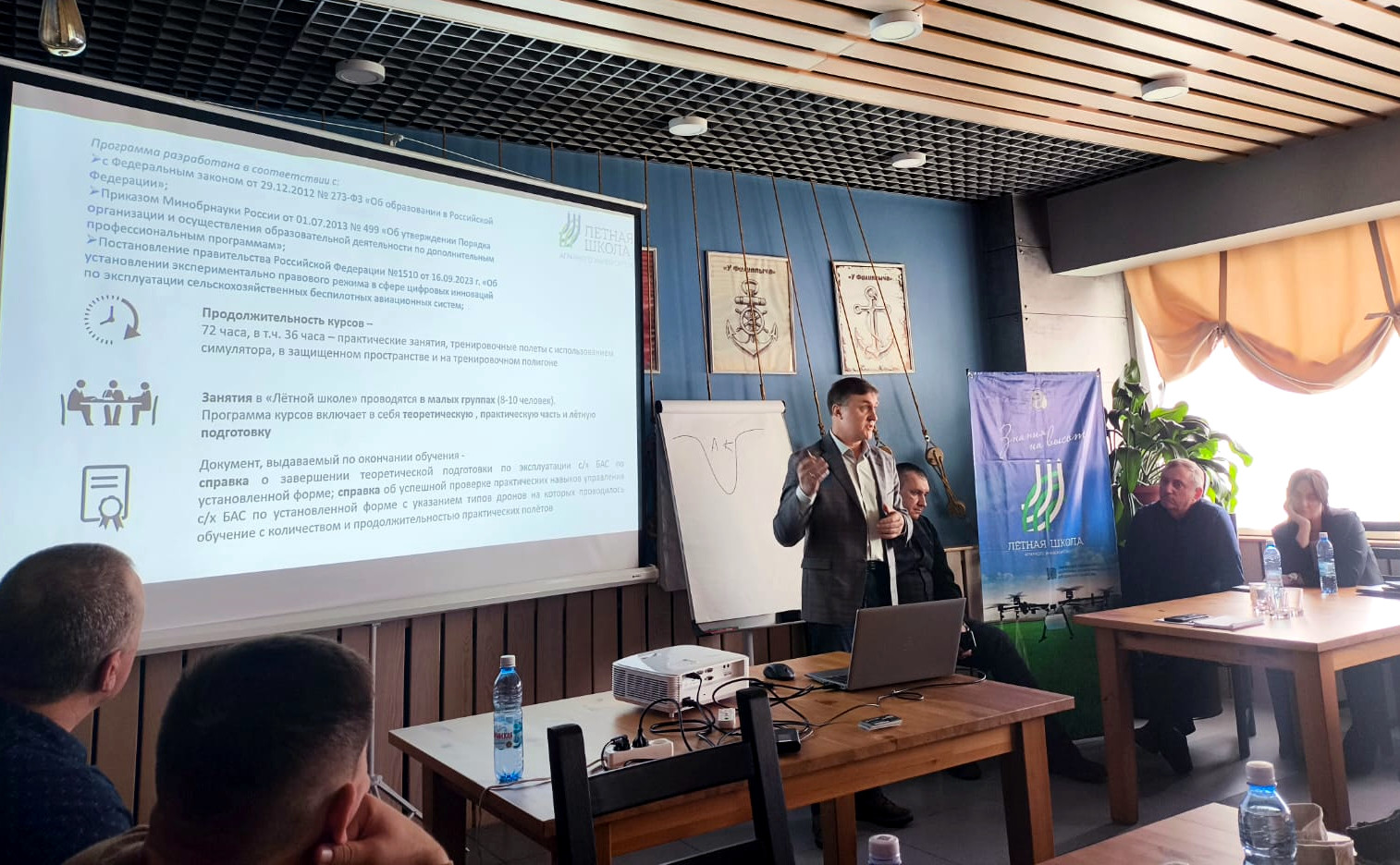 Руководитель «Лётной школы» представил программу ДПО «Оператор наземных средств управления беспилотным летательным аппаратом», которая предназначена для управления небольшими дронами (например, DJI Air 2S, DJI Mavic и DJI Phantom). С помощью таких дронов можно проводить обследование посевов, а при установке специального ПО вести учет количества растений на кв.м с пересчетом на гектар, определять видовой и количественный состав сорняков, провести построение ортофотоплана.
