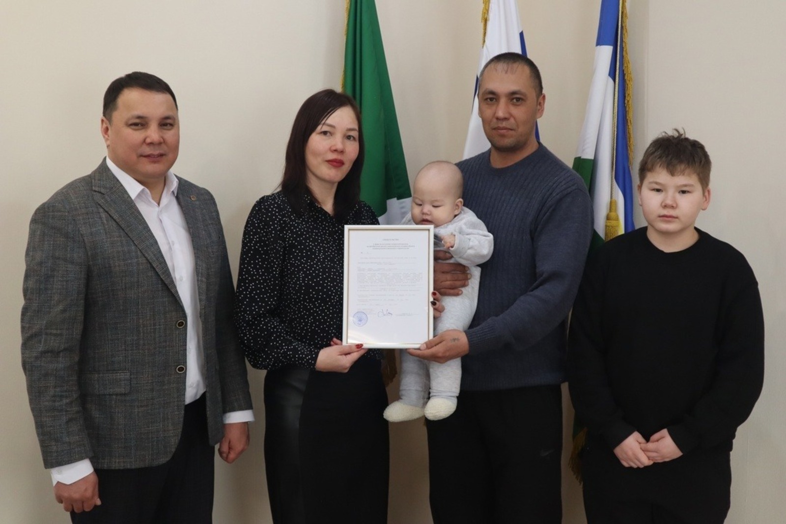 Глава администрации района Ильдар Нафиков лично поздравил супругов с этим радостным событием, вручив им свидетельство и выразив пожелания семейного благополучия, здоровья и достатка. Он подчеркнул важность создания комфортных условий для проживания и выразил надежду на дальнейшее процветание семьи.