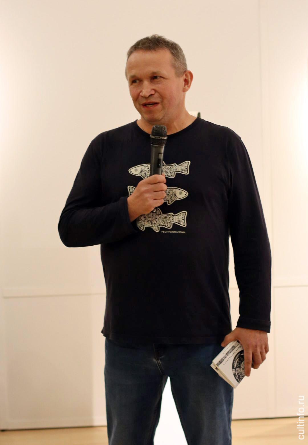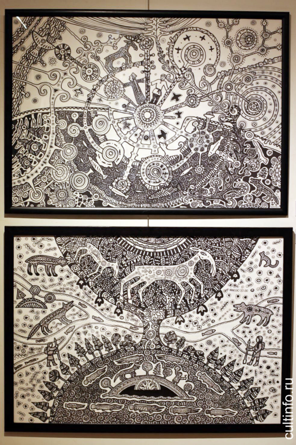 География участников обширна: Москва, Санкт-Петербург, Вологда, Череповец, Архангельск, Пермь, Сыктывкар, Улан-Удэ и многие другие города. Среди участников – Юрий Лисовский, художник-этнофутурист из Сыктывкара, чьи графические работы переносят зрителя в мир древних северных мифов. Его стиль узнаваем по множеству деталей, сквозь которые проступают архаичные образы и представления предков о вселенной. В работе «Очень быстрый лось, короткое лето» художник обращается к финно-угорским мифам, где животные, люди и духи тесно переплетены, а силы природы определяют судьбы. Через узоры и ритмы Лисовский словно воссоздает древние сказания.