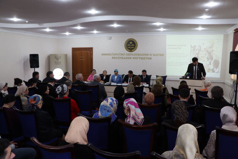 Ахмед-Башир Цороев обратил внимание на оказываемую поддержку семьям участников СВО в сфере образования, а также обозначил ряд задач, которые занимают приоритетное место в системе образования республики.