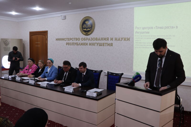 С основным докладом выступил Министр образования и науки Республики Ингушетия Ахмед-Башир Цороев. Он рассказал о реализации национального проекта «Образование» и «Демография» на территории региона. В 2024 г. открыты восемь общеобразовательных организаций с проектной мощностью 5068 ученических мест и два детских сада на 440 мест.