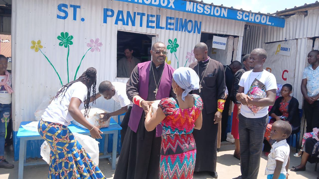 Помимо духовного окормления приход оказывает гуманитарную помощь нуждающимся. Так, по окончании богослужения при поддержке директора школы священнослужители раздали кукурузную муку вдовам, проживающим в трущобах Кариобанги.
