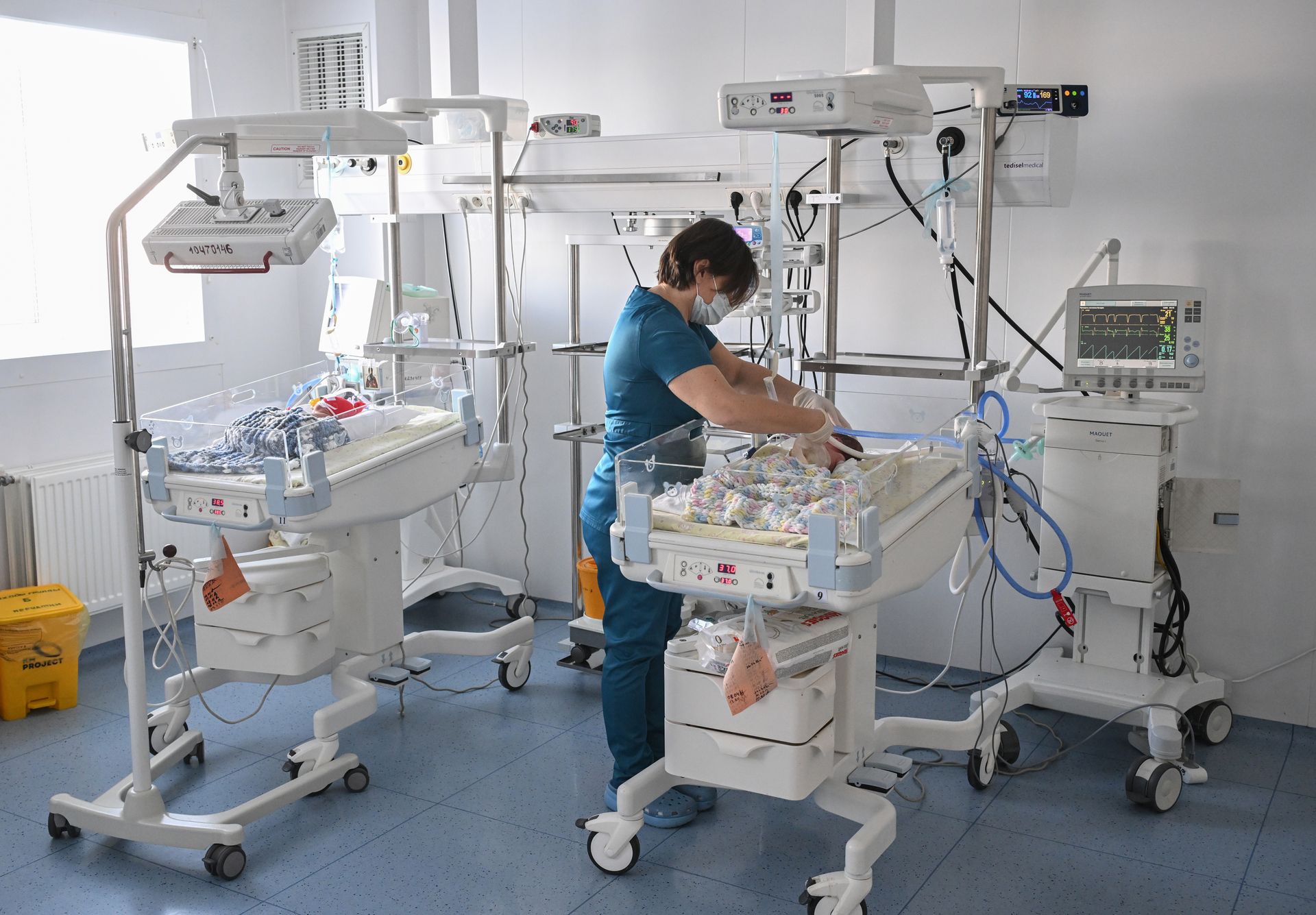 - Врач проводит осмотр новорождённых детей в перинатальном центре Симферополя