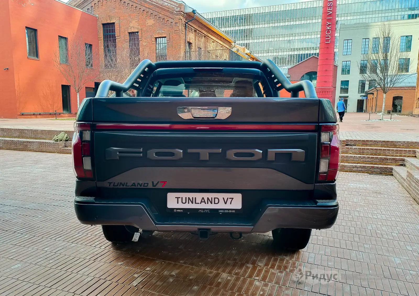 FOTON TUNLAND V7 оборудован задней рессорной подвеской для большей надёжности и устойчивости при полной загрузке кузова, что указывает на его более утилитарное предназначение. Наличие задних рессор может вызвать кривую улыбку у определённой части ценителей комфорта. Но она быстро компенсируется тем фактом, что в кузов машины свободно помещается квадроцикл (кому надо, тот поймёт).