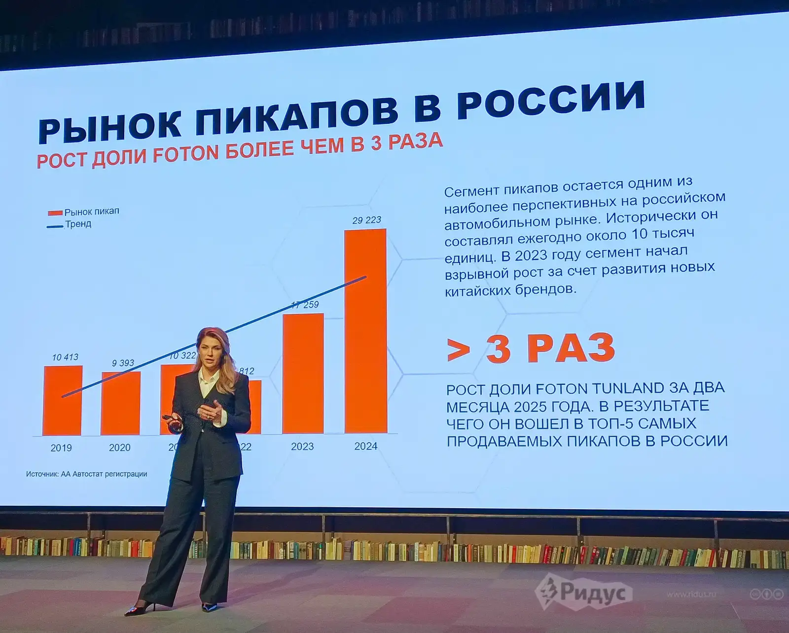 «Сегмент пикапов остаётся одним из наиболее перспективных на российском рынке. Такие автомобили востребованы среди частных потребителей и у корпоративных клиентов. Именно поэтому мы приняли решение расширить модельный ряд FOTON и вывести на рынок новые пикапы FOTON TUNLAND серии V — единственные официально поставляемые полноразмерные пикапы в России»,