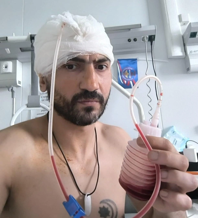 — Оперировали 4,5 часа, убирали из головы осколки, части черепа. Площадь поражения — 43 квадратных сантиметра — это почти одна третья часть головы. Утром я спрашиваю: «Как операция прошла?» Оказалось, что я уже в Москве, очень смутно помню, что в самолете был. Затем направили в медцентр, там провели вторую операцию, установили пластину. Прошел военно-врачебную комиссию, она установила категорию годности «Д» — не годен к участию в боевых действиях и к службе в армии. Левая сторона тела почти не работает, плохо слушаются рука и нога, хожу с тростью. Правая рука тоже иногда немеет. Сказали, что полгода о выписке можно не мечтать. Но я всё равно хочу продолжить участие в СВО, так как я уже опытный воин, был на трех боевых заданиях, получил три ранения, многое знаю, многое умею и хочу принести пользу России. Буду просить, чтобы мне дали такую возможность, — сказал Эльшан Алиев.