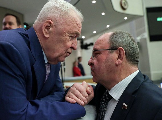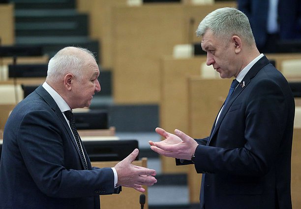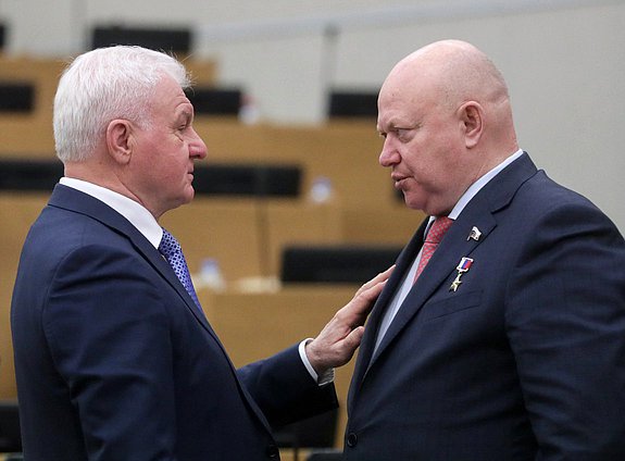 Первый заместитель Председателя Комитета по аграрным вопросам Владимир Плотников и Первый заместитель Председателя Комитета по обороне Андрей Красов