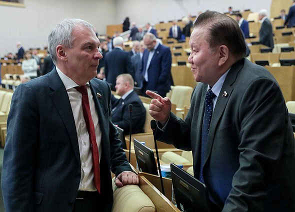 Заместитель Председателя Комитета по транспорту и развитию транспортной инфраструктуры Юрий Григорьев и Первый заместитель Председателя Комитета по охране здоровья Федот Тумусов