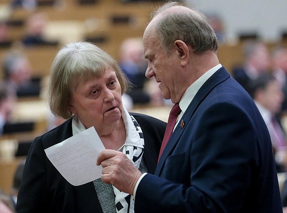 Заместитель Председателя Комитета по обороне Светлана Савицкая и руководитель фракции КПРФ Геннадий Зюганов