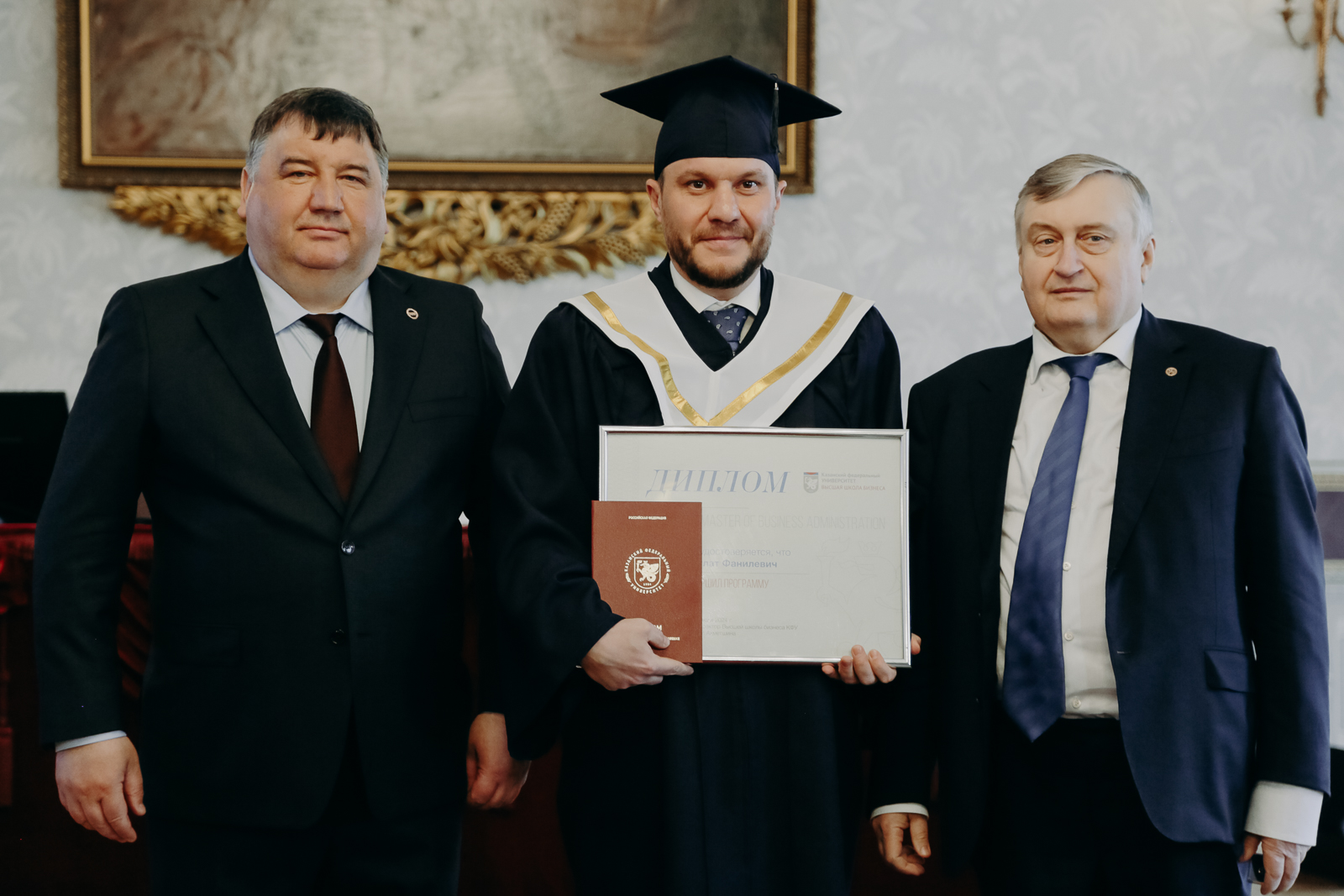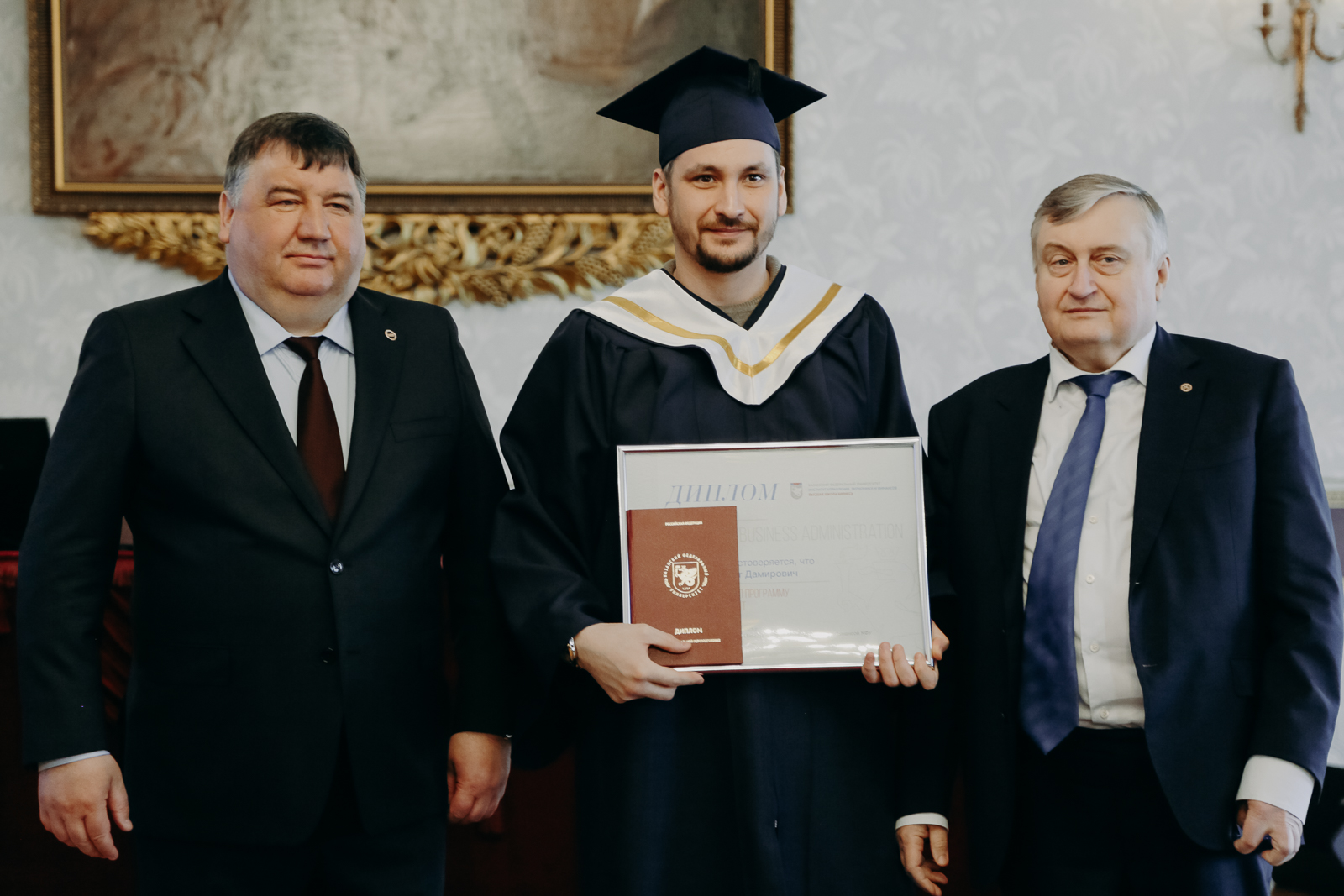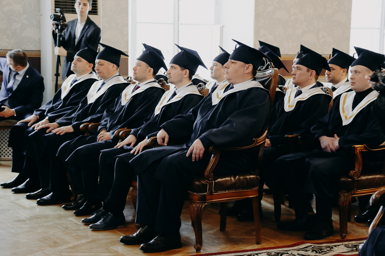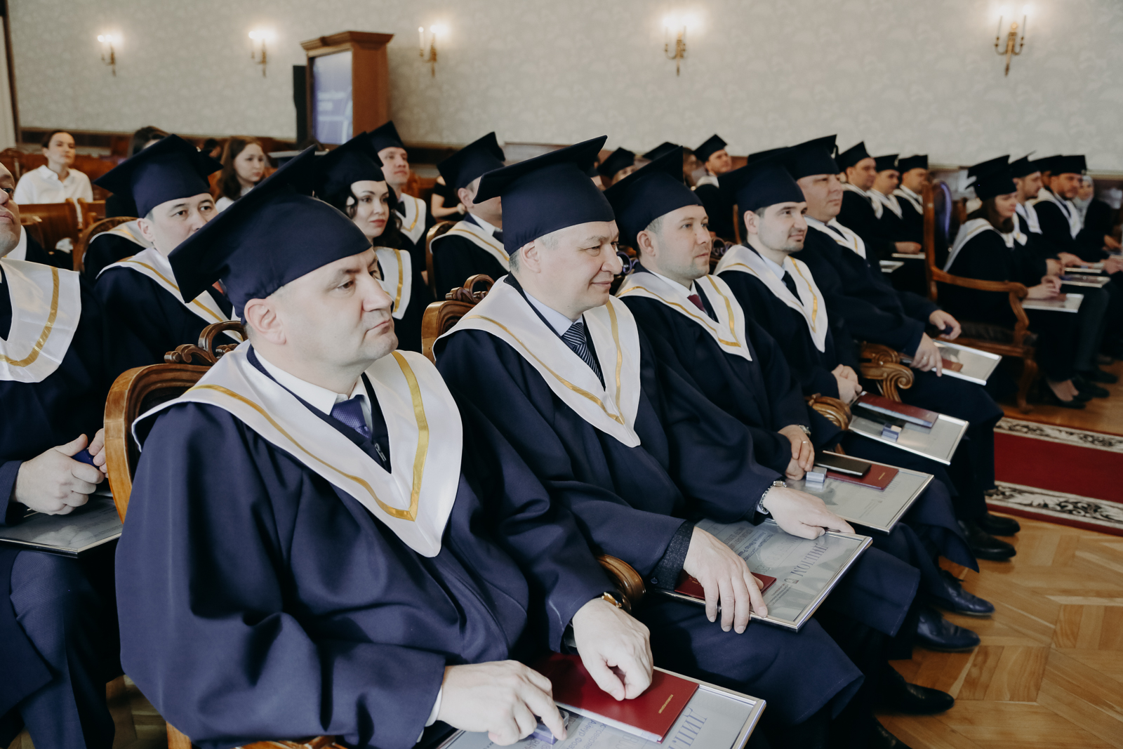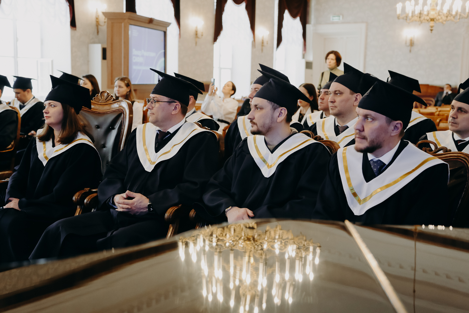 Сегодня дипломы докторов делового администрирования получили два гражданина Султаната Оман – председатель Группы компаний «Аль-Шааили» Абдулла Салим Бахит аль-Шааили и главный инженер Национальной нефтяной инвестиционной компании Омана OQ Джасим Мохаммед Салим аль-Маамари. 32 российским специалистам присвоена степень мастера делового администрирования.