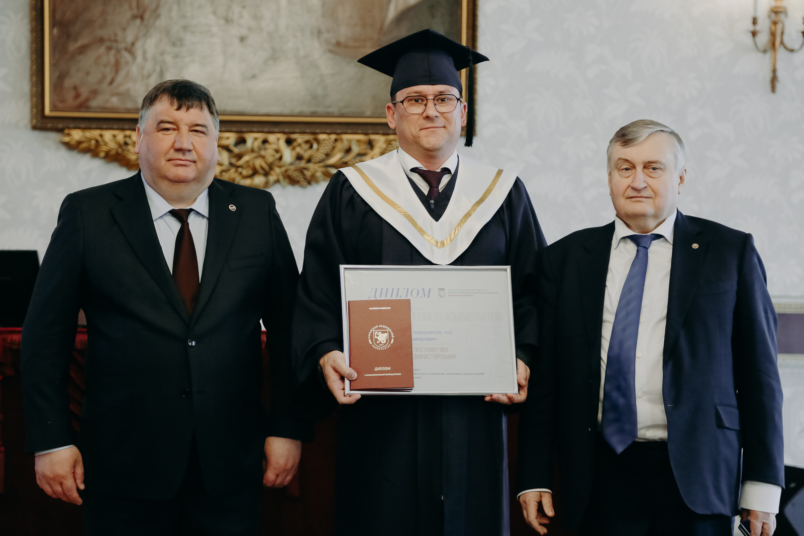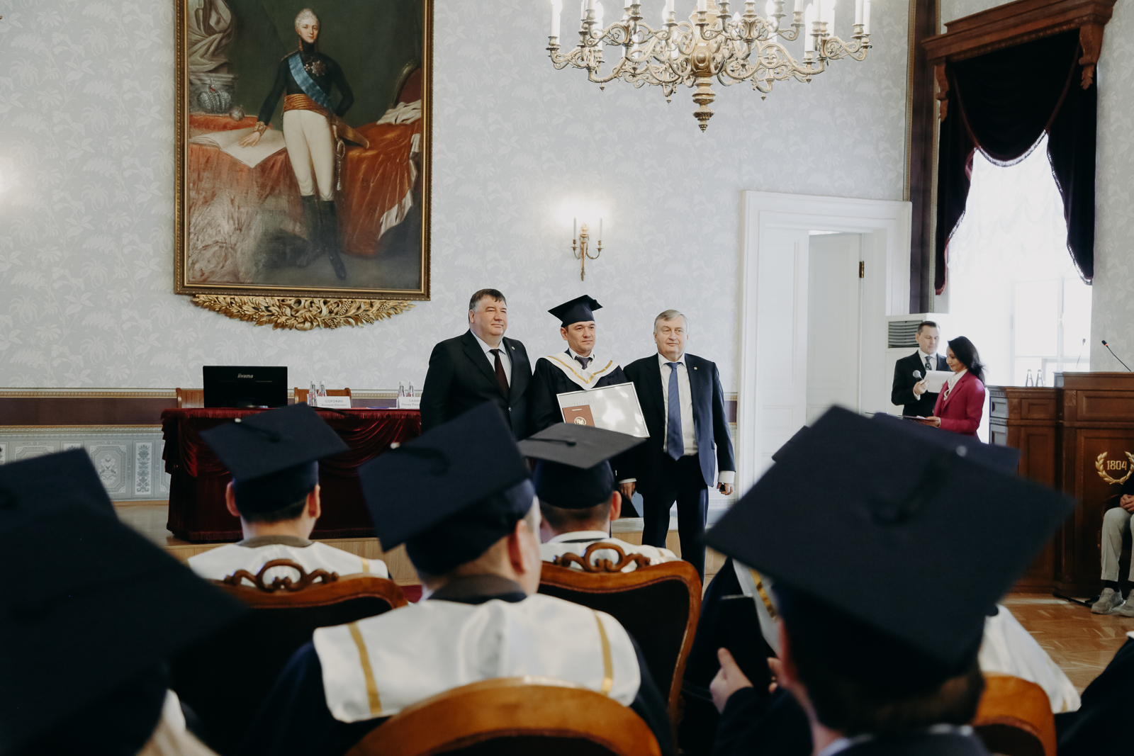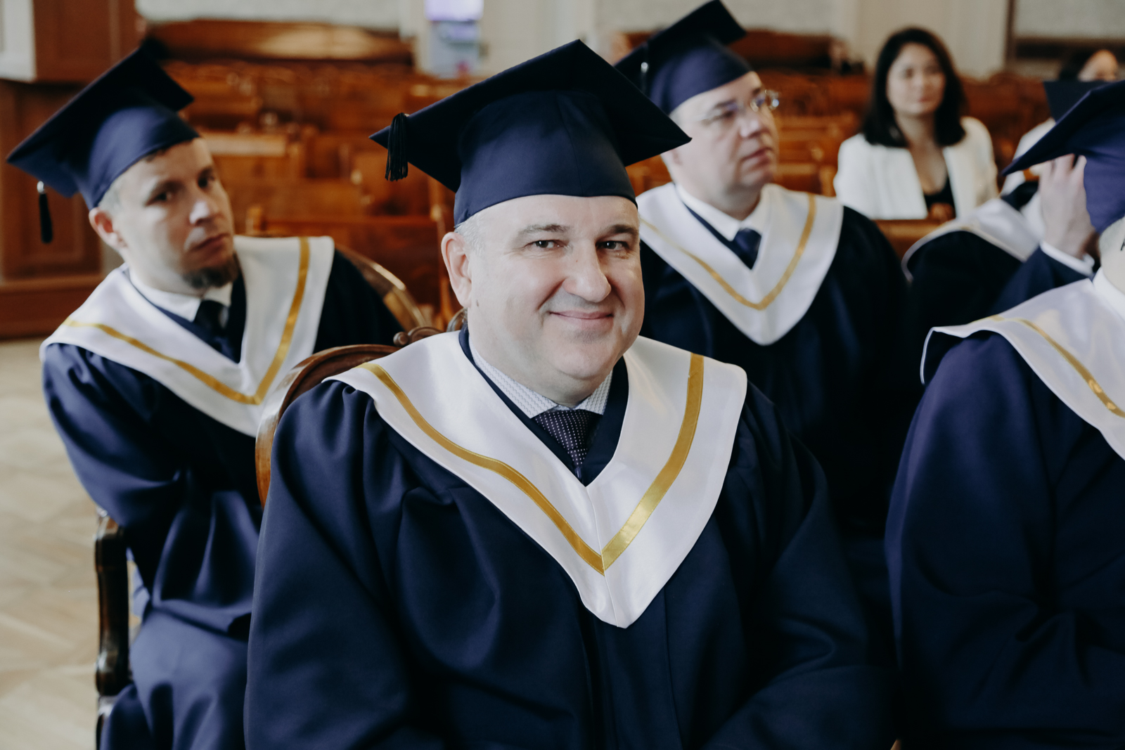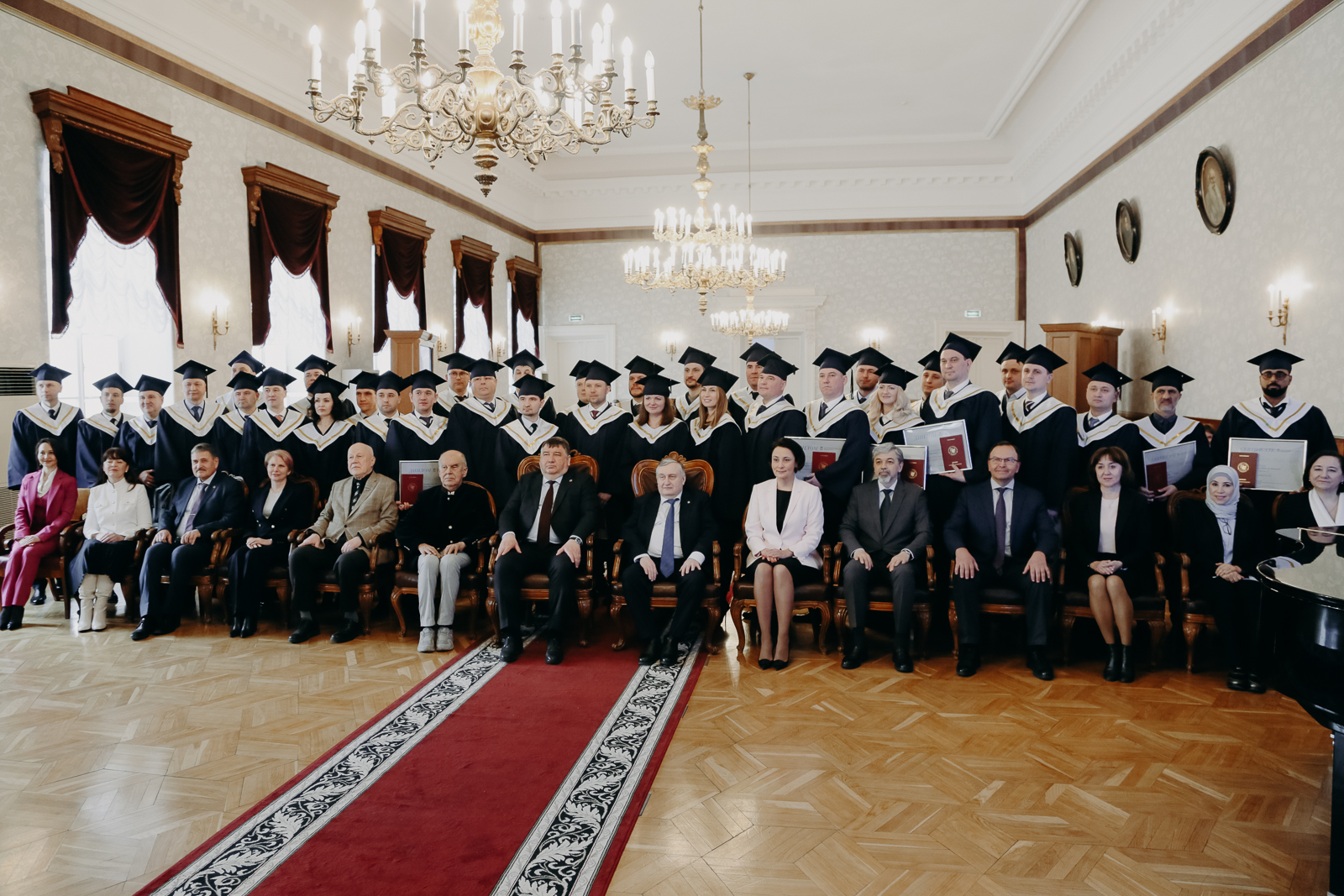Сегодня дипломы докторов делового администрирования получили два гражданина Султаната Оман – председатель Группы компаний «Аль-Шааили» Абдулла Салим Бахит аль-Шааили и главный инженер Национальной нефтяной инвестиционной компании Омана OQ Джасим Мохаммед Салим аль-Маамари. 32 российским специалистам присвоена степень мастера делового администрирования.