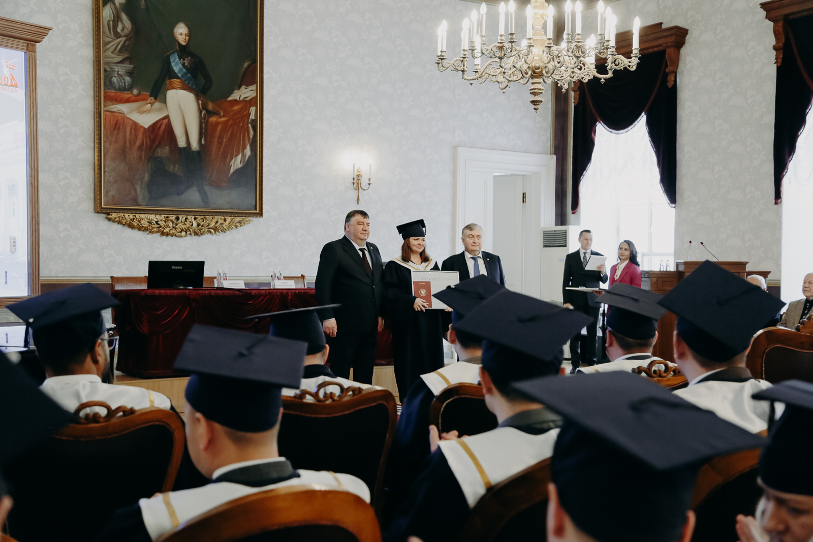 В Императорском зале Казанского федерального университета состоялась торжественная церемония вручения дипломов слушателям программ DBA и МВА. Выпускниками Высшей школы бизнеса Института управления, экономики и финансов стали 34 человека.