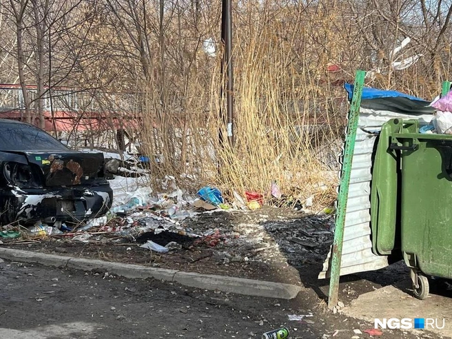 Подойдя к ближайшему дому, понимаю опасения жителей — неподалеку стоят мусорные баки. Кругом и без рынка нечистоты, возле мусорки стоит полусгнивший автомобиль.