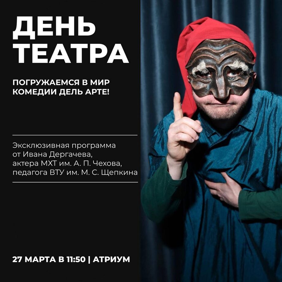 27 марта — Международный день театра, в этот праздник Учебный театр ММУ приглашает в университет Ивана Дергачева, актера МХТ им. А. П. Чехова, педагога ВТУ им. М. С. Щепкина.