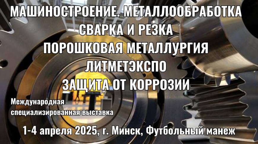 Международные специализированные выставки «Металлообработка», «Машиностроение», «Сварка и резка», «Порошковая металлургия», «Защита от коррозии. покрытия», «Литметэкспо», пройдут с 1 по 4 апреля по адресу: г. Минск, пр-т Победителей, 20/2, Футбольный манеж.