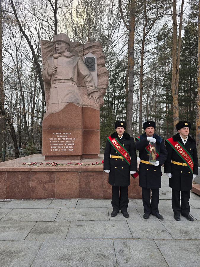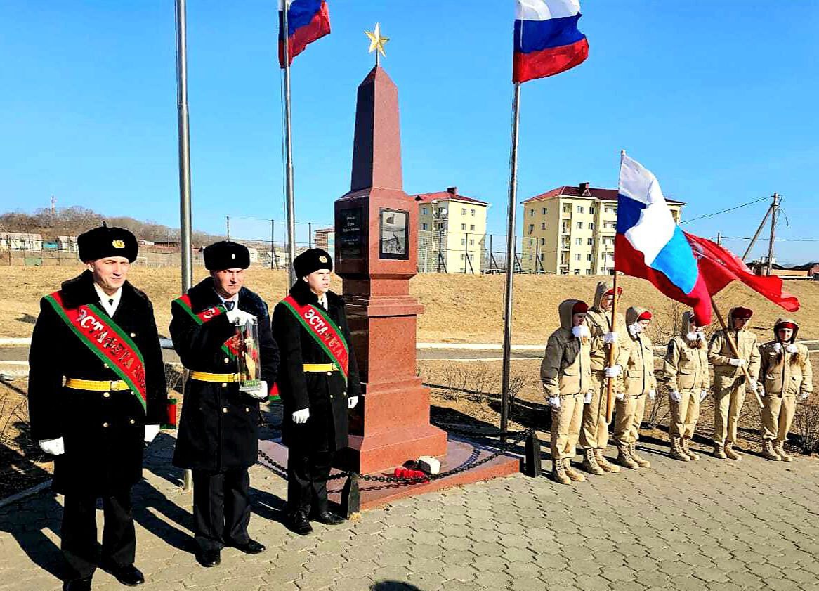 Торжественный митинг и праздничный концерт прошли в Хасане, откуда эстафетная группа отправилась в Службу в селе Камень-Рыболов. Стражи рубежей побывали в отделениях в н.п. Турга и поселке Рассказово, где проходил службу прапорщик Дмитрий Шамин, погибший при выполнении воинского долга в сентябре 2024 г. в Курской области.