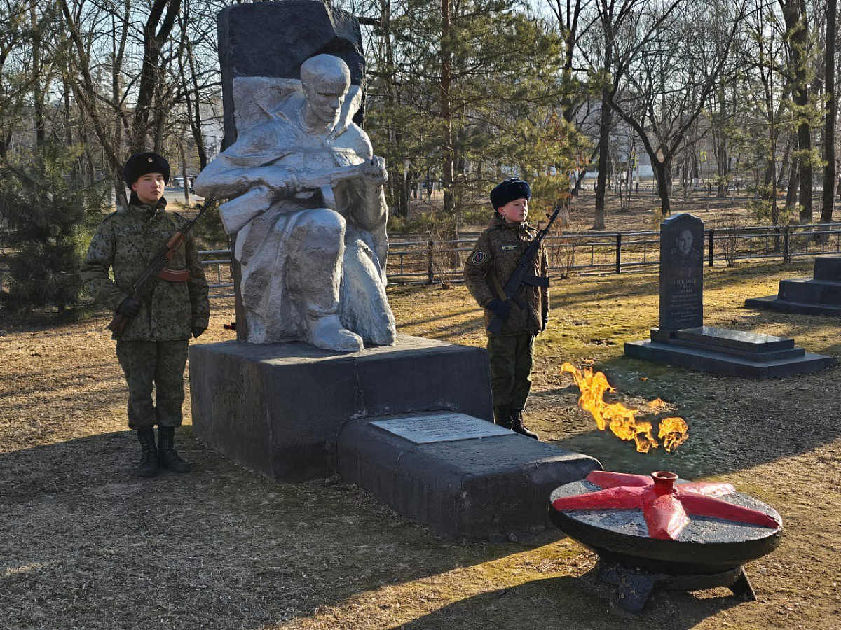 В Тамани, в сквере им. А. Головатого возле Вечного огня состоялась торжественная церемония передачи символа "Эстафеты Победы – 2025" от Пограничного управления ФСБ России по Республике Крым коллегам из Пограничного управления ФСБ России по Краснодарскому краю.