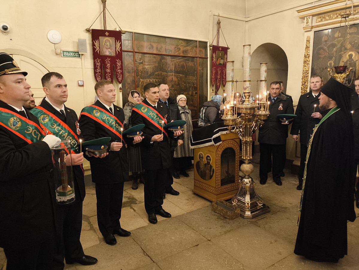 Кроме того, эстафетная группа побывала в пограничном отделении в поселке Рогозино имени политрука Петра Родионова и посетила Свято-Успенский Псково-Печорский мужской монастырь, где прошло богослужение.