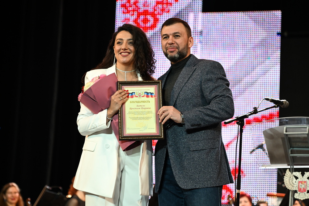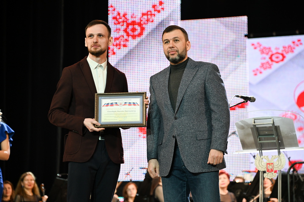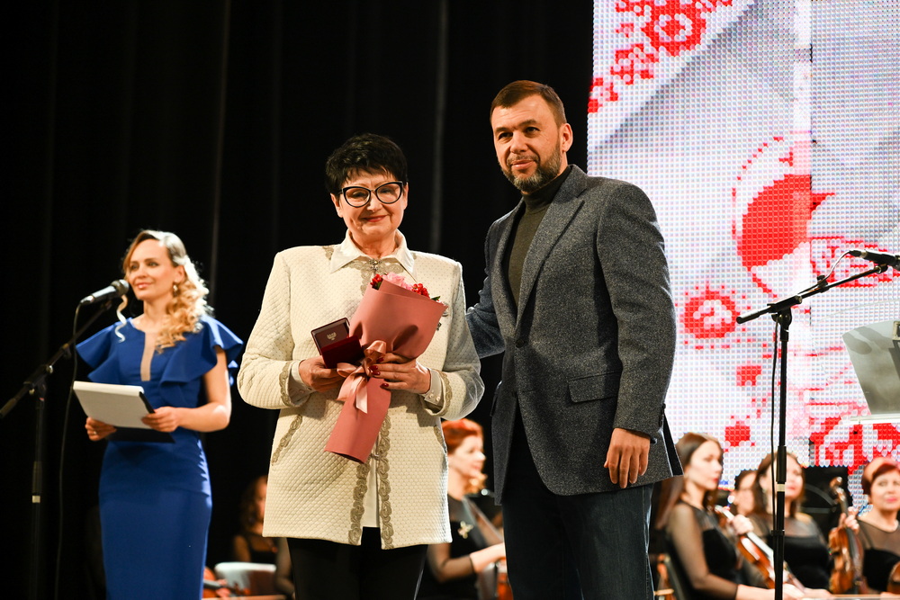 Во вторник, 25 марта, Глава Донецкой Народной Республики Денис Пушилин принял участие в торжественном мероприятии по случаю Дня работника культуры и вручил представителям сферы государственные награды.