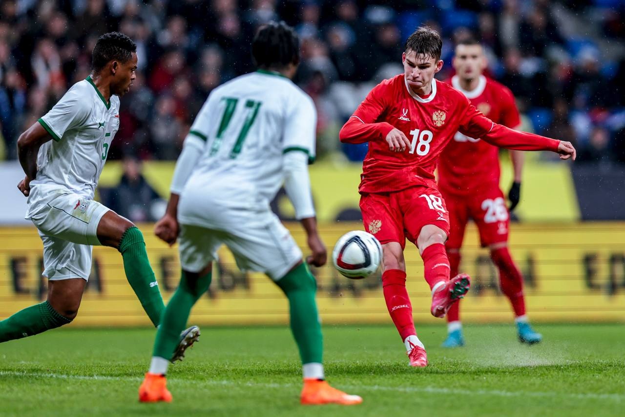Уже перед перерывом россияне забили второй мяч. После навеса Кругового мяч отскочил к Вахании, который точно пробил в цель.
