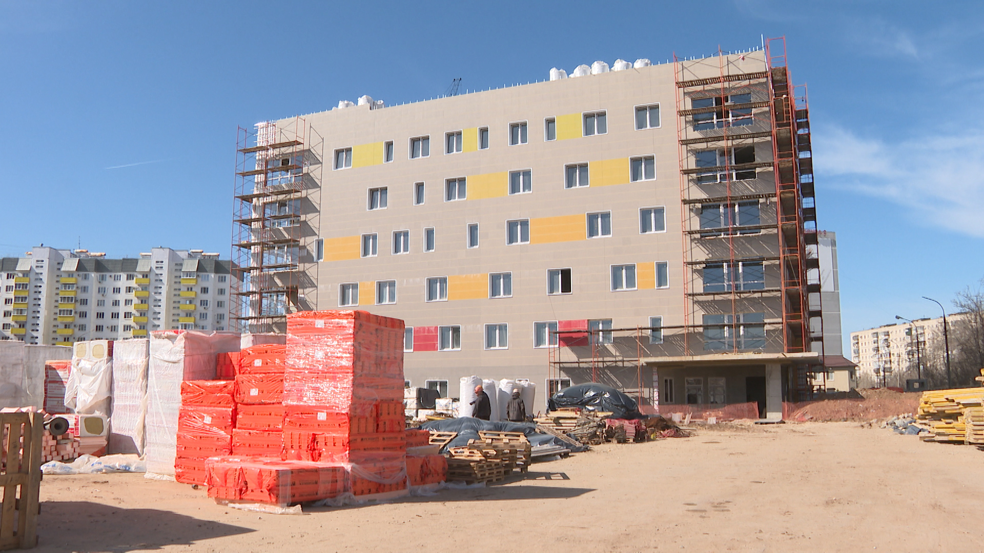 Строительная готовность – 35 %. В новом шестиэтажном здании детской поликлиники врачи будут принимать до 350 посетителей в день. К возведению современного комплекса специалисты приступили в марте 2023 года. Завершить работы планируют к концу этого года.