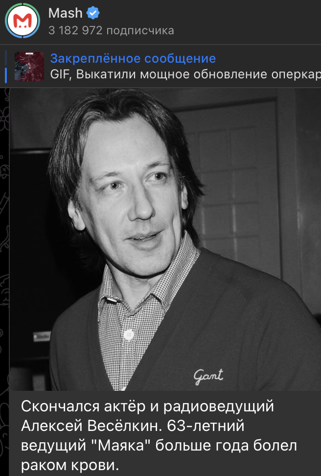 Он вспомнил, что год назад прозвучал страшный диагноз и они решили не обсуждать это публично. Стиллавин подчеркнул, что Алексей мужественно боролся с болезнью, веря в свою победу. До последней недели он говорил о том, что после очередного курса химиотерапии нужно набираться сил и возвращаться к нормальной жизни, несмотря на отсутствие энергии для работы в эфире.