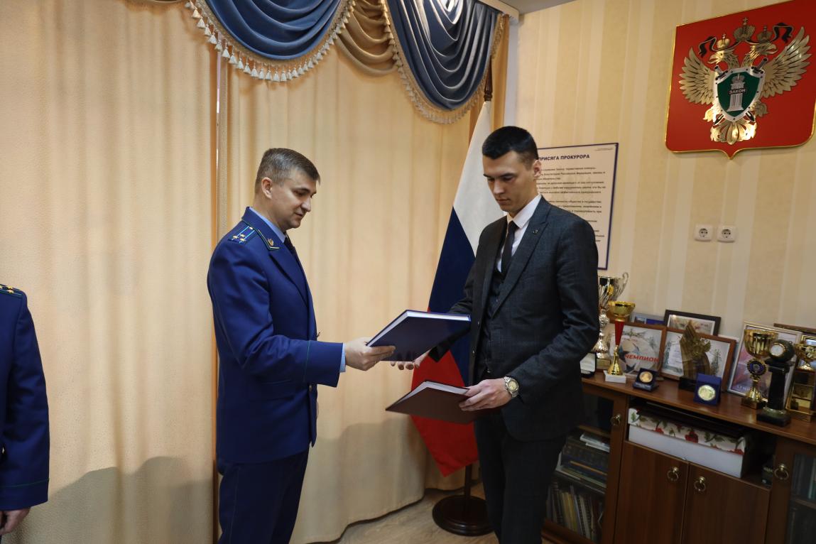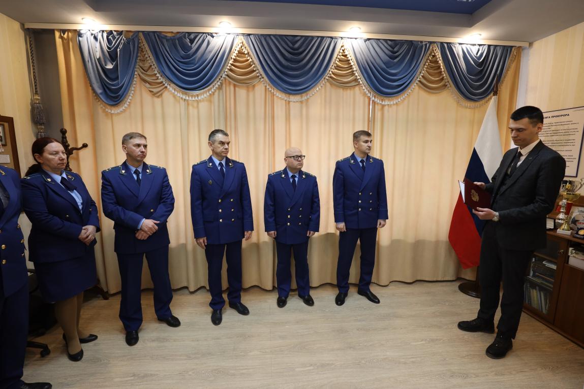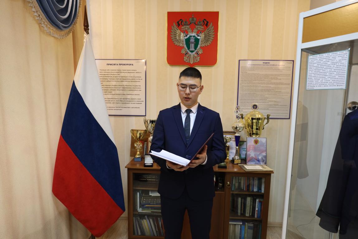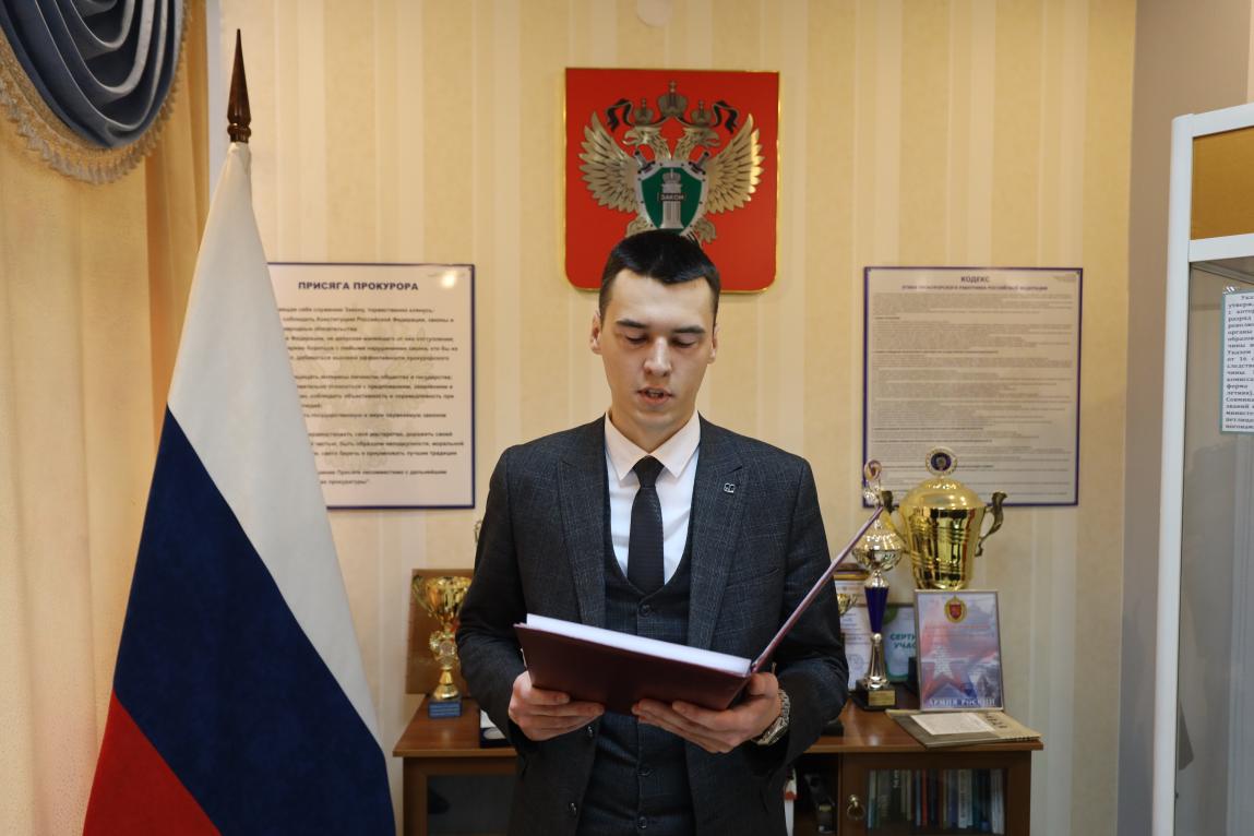 Присягу прокурора в торжественной обстановке приняли молодой специалист, прошедший аттестацию, а ранее - вновь назначенный сотрудник, успешно прошедший обучение по целевому направлению регионального надзорного ведомства в институте прокуратуры.