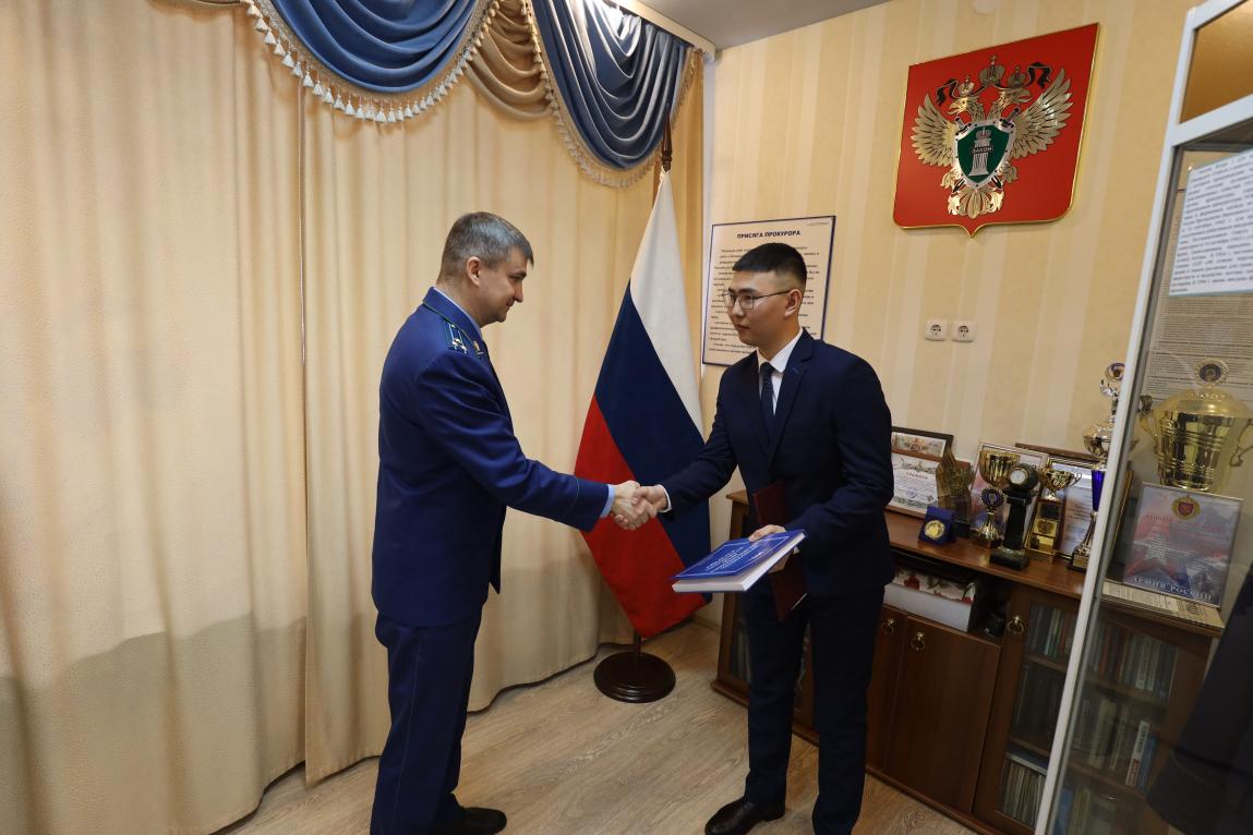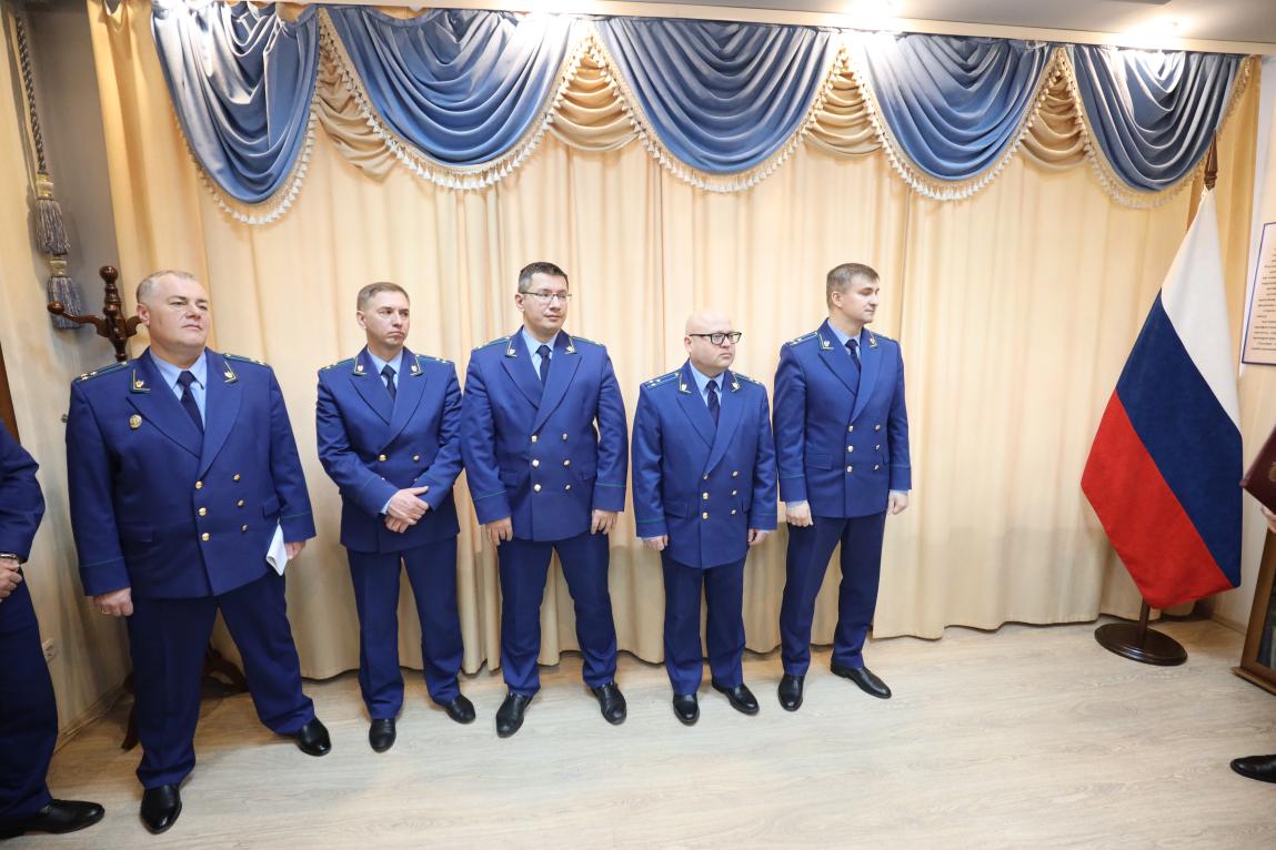 Заместитель прокурора Забайкальского края Сергей Цурбанов и член региональной общественной организации ветеранов органов прокуратуры Олег Власов поздравили принявших Присягу прокурора работников, пожелав им с честью служить в органах прокуратуры.