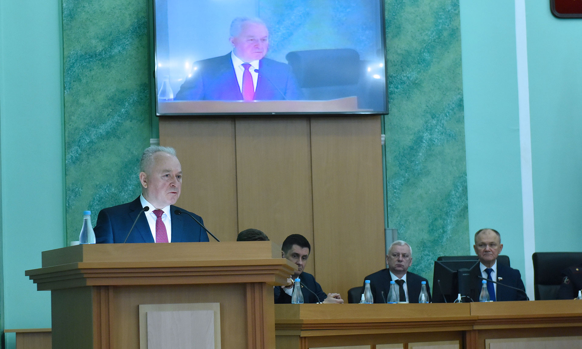 В работе Думы принял участие федеральный инспектор по Брянской области Игорь Фильченков, сенаторы РФ Вадим Деньгин и Василий Попадайло, депутаты Государственной Думы Николай Валуев, Николай Щеглов, представители федеральных структур, областного Правительства и муниципальных образований региона.