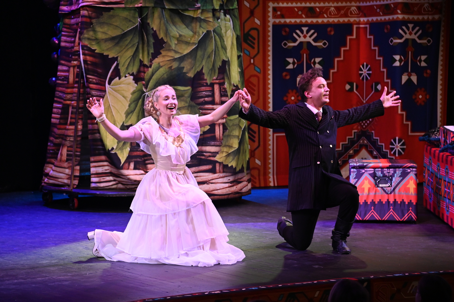 Новый спектакль поставлен в жанре комедии-водевиля, наполнен музыкой, песнями и национальным колоритом, переданном в красочном оформлении сцены, ярких национальных костюмах и речитативе.