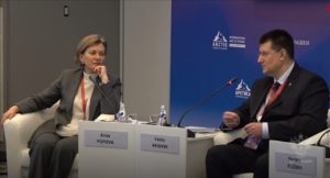 Модератором сессии выступила руководитель Федеральной службой по надзору в сфере защиты прав потребителей Анна Юрьевна Попова.