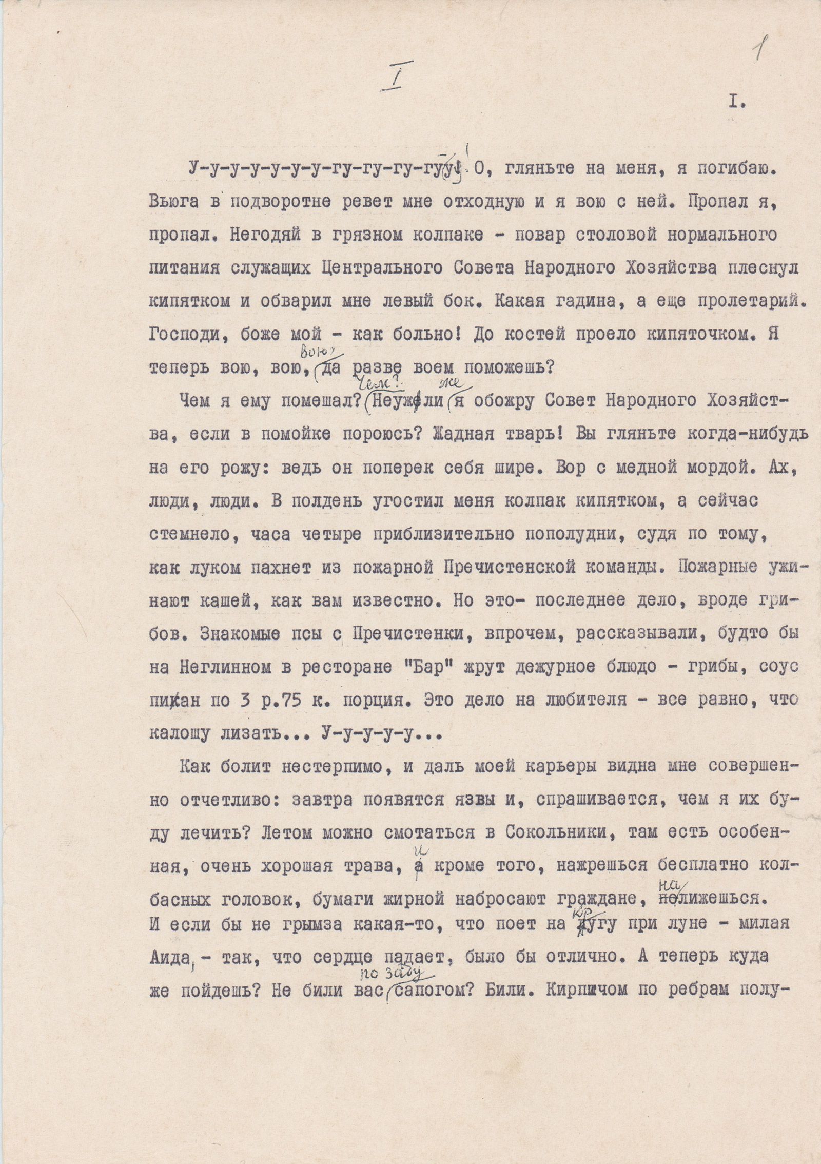 «И я рада, теперь можно, не торопясь, сделать экземпляр “Собачьего сердца”, что я давно собиралась сделать — на всякий случай. А вдруг напечатать решатся. Тогда будет готовый экземпляр для редакции», — записала Елена Сергеевна в дневнике 29 октября 1967 года.