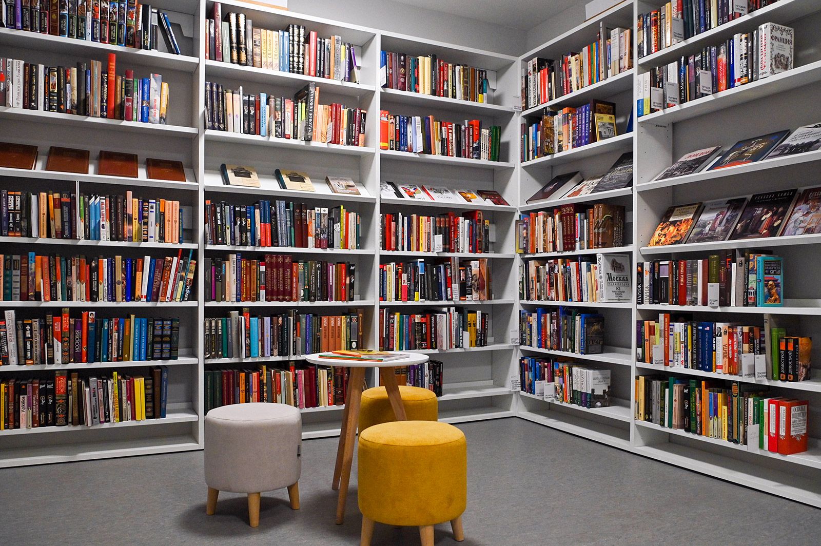 В научно-просветительском центре есть библиотечный абонемент, где представлена русская и зарубежная классическая и современная художественная литература, книги об истории, философии, изобразительном искусстве, театре, кино, музыке, большая коллекция нотных изданий, а также литературоведение — монографии и статьи, посвященные жизни и творчеству Михаила Булгакова и других писателей. До августа здесь открыта камерная выставка «“Собачье сердце” в эскизах Киры Добряковой», приуроченная к 100-летию создания повести. На выставке можно увидеть эскизы костюмов к спектаклю Театра имени Ленсовета 1988 года работы Киры Добряковой: Полиграфа Полиграфовича Шарикова, Филиппа Филипповича Преображенского, барышни и других.