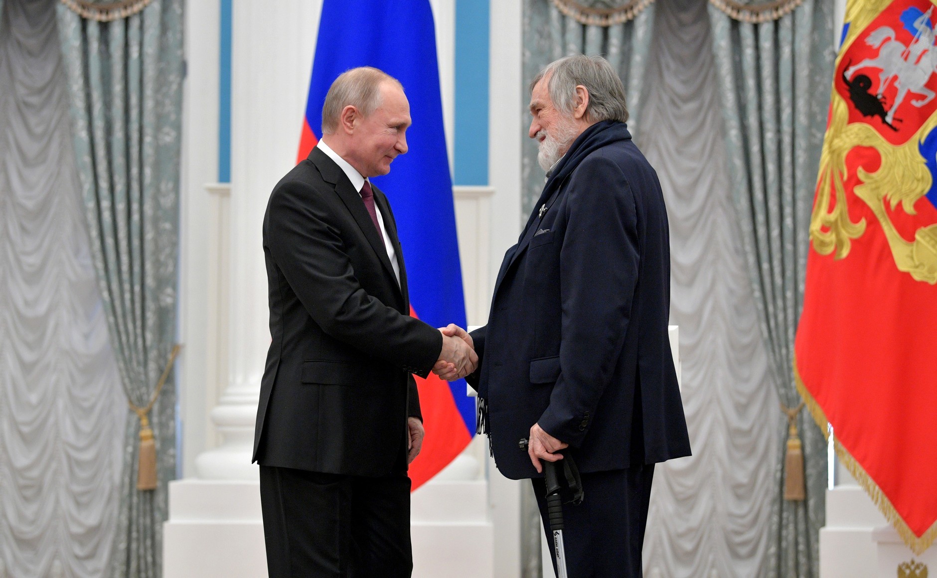 - Президент России Владимир Путин и народный художник России Борис Диодоров на вручении премий президента молодым деятелям культуры и за произведения для детей. Москва. Кремль. 26 марта 2019 года