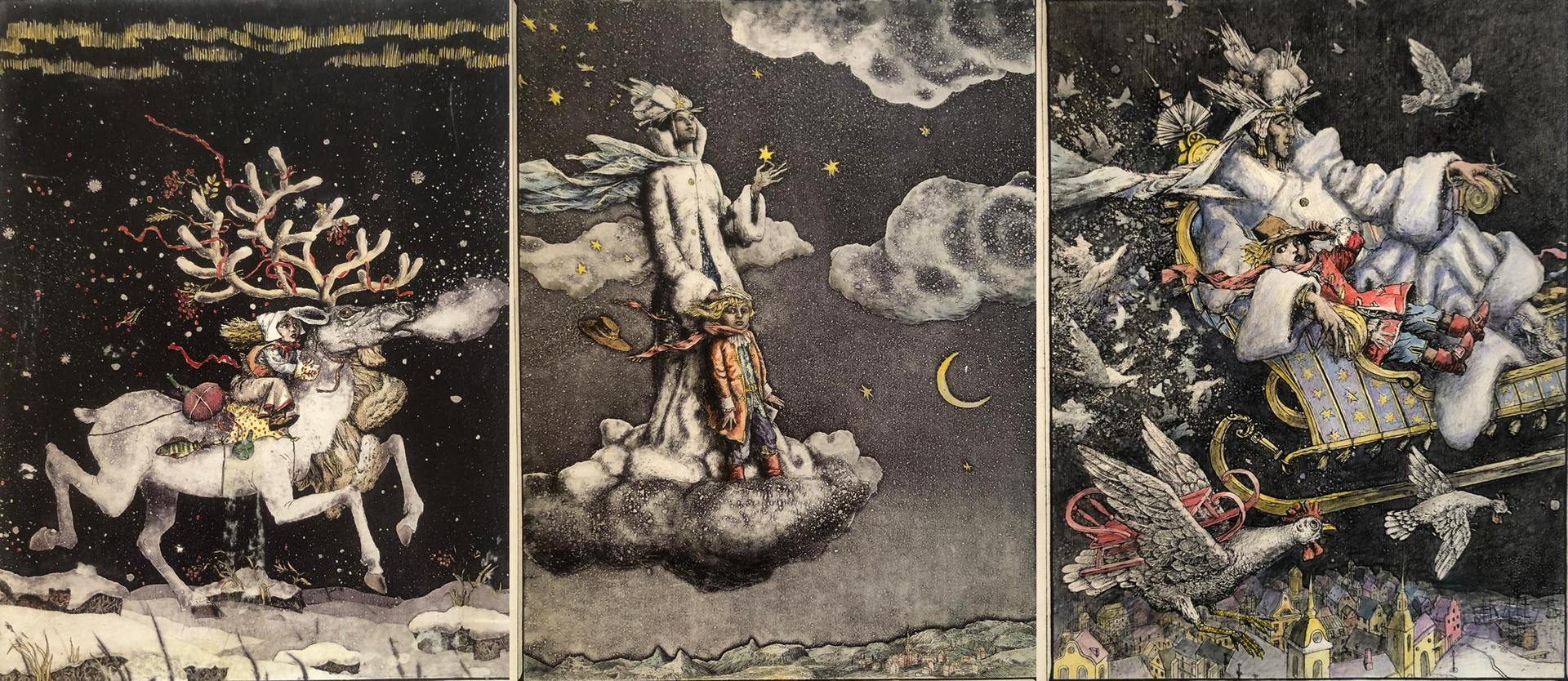 —Впервые серьёзно я прикоснулся к Андерсену в 1980 году. Тогда в СССР открылись центры ВААП (Всесоюзного агентства по авторским правам), куда могли приезжать представители западных издательств и делать заказы советским писателям и художникам. Страна получала валюту, а мы свой гонорар — в чеках, которые можно было конвертировать в рубли. Одно австрийское издательство предложило мне на конкурсной основе сделать одну иллюстрацию к сказке «Снежная королева». Но одной мне показалось мало — я сделал три в технике цветного офорта. Для этого я буквально дневал и ночевал в мастерских Челюскинского дома творчества, где были хорошие возможности для работы. Словом, выложился по полной.