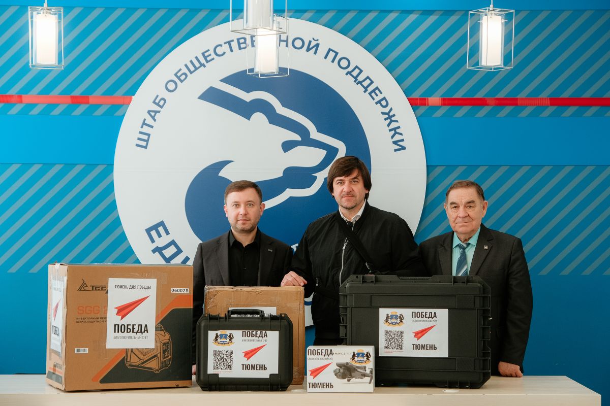 От Тюменской области для земляков на фронт направили: квадрокоптеры, тепловизионные прицелы, усилитель сигнала дронов, 10 раций и генератор. Сбор оборудования шёл в региональном штабе общественной поддержки «Единой России».
