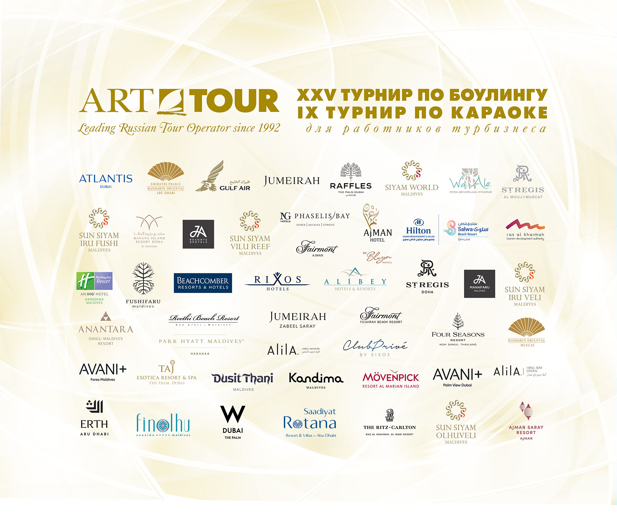 Туроператор «Арт-Тур» также сердечно благодарит за поддержку наших партнеров озвученных выше, а также отелиBEACHCOMBERRESORTS(Маврикий) и ADDRESSCREEKHARBOUR(ОАЭ).
