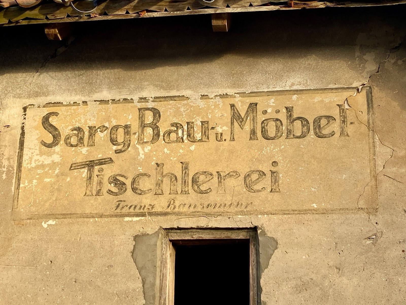 Надпись на одном из домов поселка Ясное: «Мебель для изготовления гробов Столярные изделия». Фото Игоря Вишнякова.
