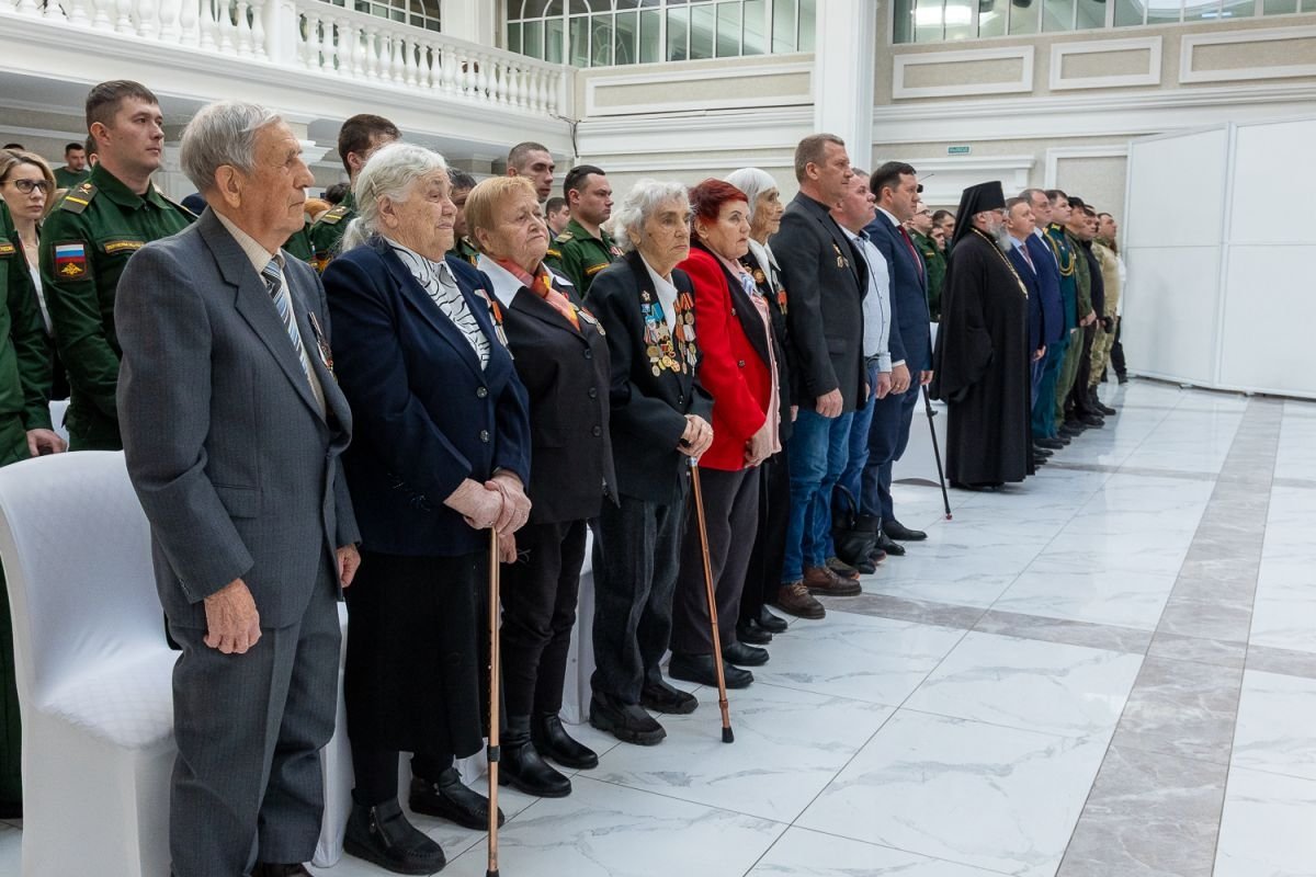 — Это уникальное мероприятие, когда мы видим связь времен: сегодня чествуем ветеранов Великой Отечественной войны и одновременно отдаем дань уважения тем, кто сейчас защищает свободу и независимость нашей страны, — отметил Сергей Надсадин. — 80 лет назад наша Родина пережила ужасы Великой Отечественной войны. И сегодня, видя живых свидетелей тех событий, мы испытываем огромную гордость от общения с вами. Именно благодаря вам, кто сражался на фронте и трудился в тылу, мы имеем то благополучие и ту жизнь, которая есть сейчас. Вы восстановили наши города и села из руин, создали ядерный щит страны, подняли промышленность и сельское хозяйство. Южно-Сахалинск — это благополучный, развивающийся город, и это — ваша заслуга!