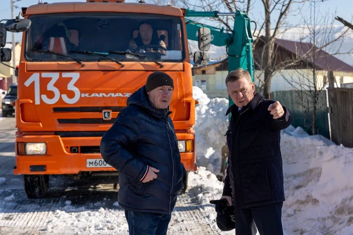 Глава города Южно-Сахалинска Сергей Надсадин лично проверил, как ведутся работы на территории Владимировки, где техника завода имени Федотова занималась расчисткой водоотводных канав. По словам специалистов профильных учреждений, работы по очистке канав и водовыпусков от снега начались раньше запланированного срока. Главная цель — подготовиться к периоду активного таяния снега и предотвратить возможные подтопления. В первую очередь внимание уделяется территории частного сектора Владимировки, а также селам.