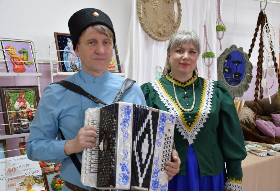 Концертные программы украшают выставки изобразительного и декоративно-прикладного искусства. Они объединяли мастериц, работающих в различных жанрах и техниках. Пономаревский район представил 20 местных умельцев. Здесь была подготовлена интерактивная зона, воплощающая избу 40-х годов прошлого столетия, где за столом сидит девочка и пишет письмо отцу на фронт. Импровизированные стены украсили местные газеты того времени. Вторая зона представлена навеянным современностью сюжетом – женщины собирают посылки на фронт, вяжут теплые носки. Тема СВО отражена в специальной экспозиции, где представлены предметы, которыми Пономаревский район помогает военнослужащим: маскировочные сети, окопные свечи, сухой душ, лапша, заживляющая мазь.