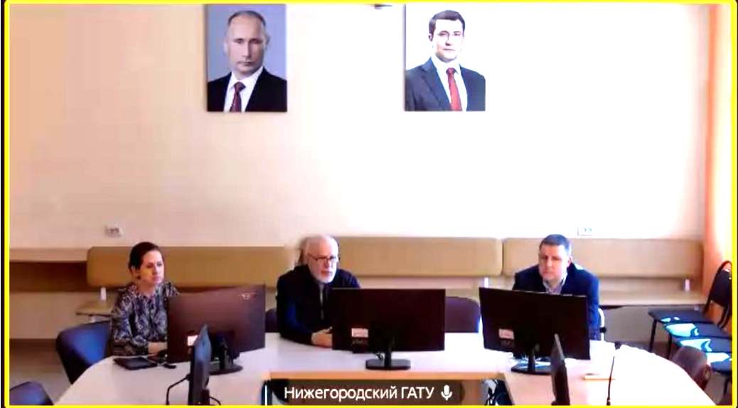 Со стороны НГАТУ о направлениях деятельности и истории взаимодействия университета с ВУЗами Белоруссии поделились: Шарина Анжелика Викторовна – проректор по учебной работе и цифровой трансформации; Иванов Владимир Викторович – проректор по воспитательной, социальной работе и молодежной политике; Тихонов Александр Анатольевич – директор Центра Российско-Белорусского сотрудничества и развития карьеры.