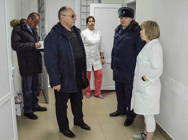 В ходе посещения лечебно-исправительного учреждения Уполномоченный по правам человека Александр Панов и главный врач «Центра психиатрии и психического здоровья имени академика В.М. Бехтерева» Игорь Набатов ознакомились с ходом работ по оборудованию стационарного отделения судебно-психиатрической экспертизы для лиц, содержащихся под стражей. Это первый опыт в стране по созданию отделения на базе лечебного-исправительного учреждения уголовно-исполнительной системы. Ввод в эксплуатацию объекта запланирован до конца текущего года.