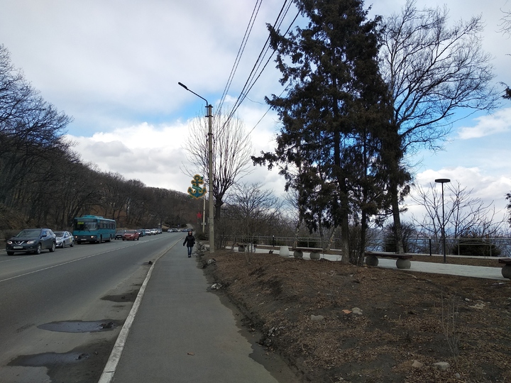 Конечно, Находка – город портовый, и вдоль побережья идет сплошная промзона. Ещё год назад здесь высились угольные кучи. Но сейчас угля стало намного меньше, а рабочие порты переходя на контейнерные перевозки. Но всё равно «панорамный вид на море» с городских улиц – только сквозь портовые краны.