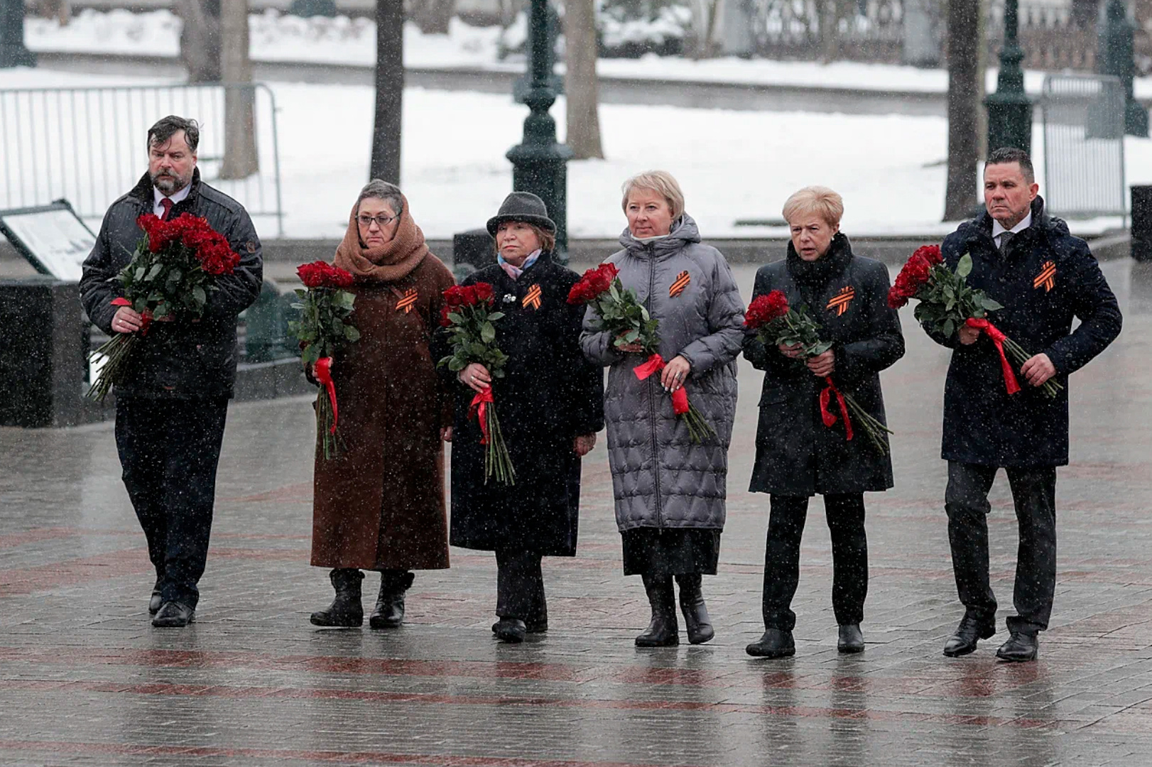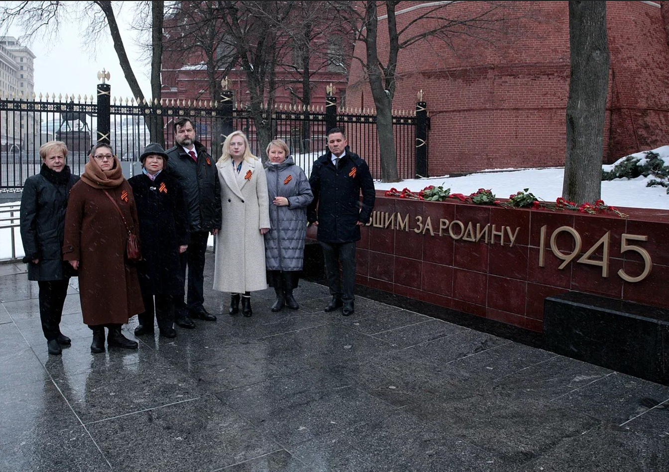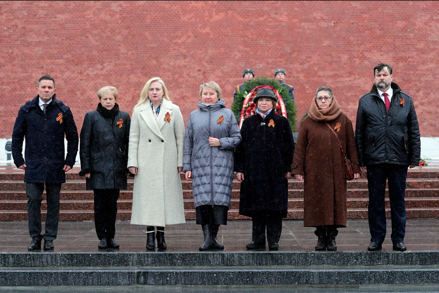 В Александровском саду в преддверии Дня Победы делегация представителей федеральных библиотек во главе со статс-секретарем – заместителем Министра культуры Российской Федерации Жанной Алексеевой приняла участие в торжественной церемонии возложения венков и цветов к Могиле Неизвестного Солдата.