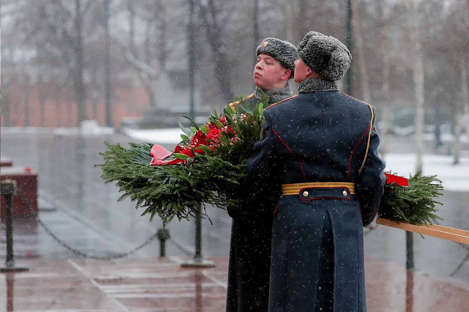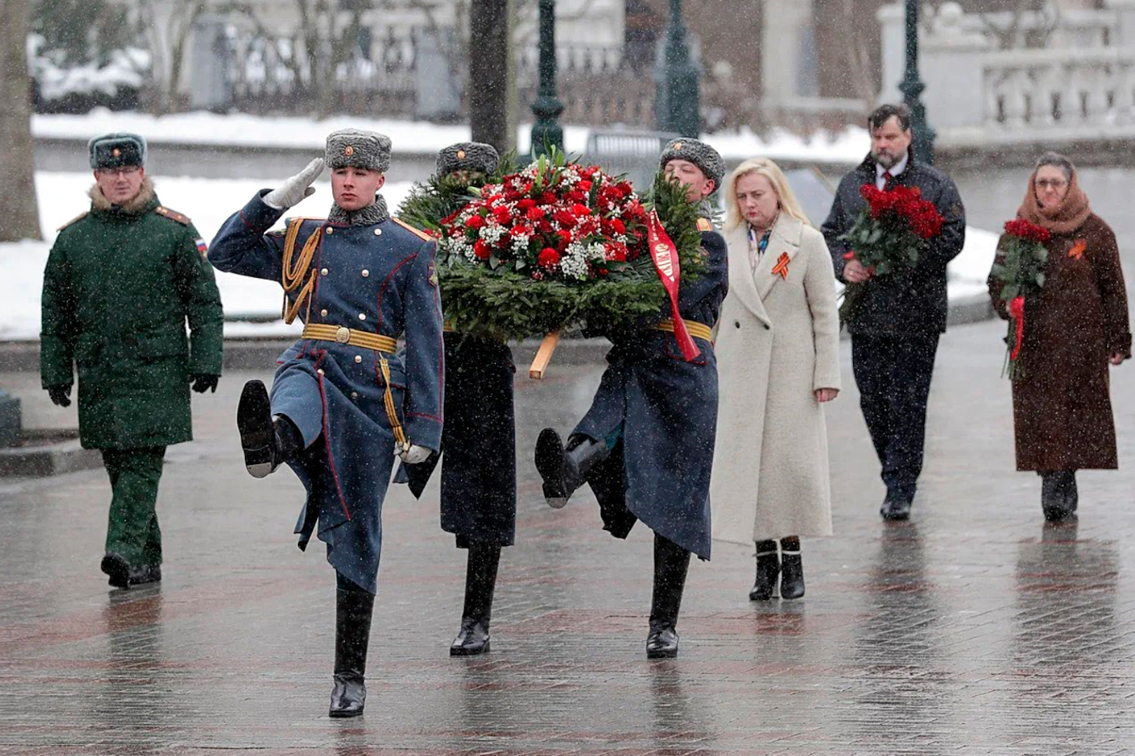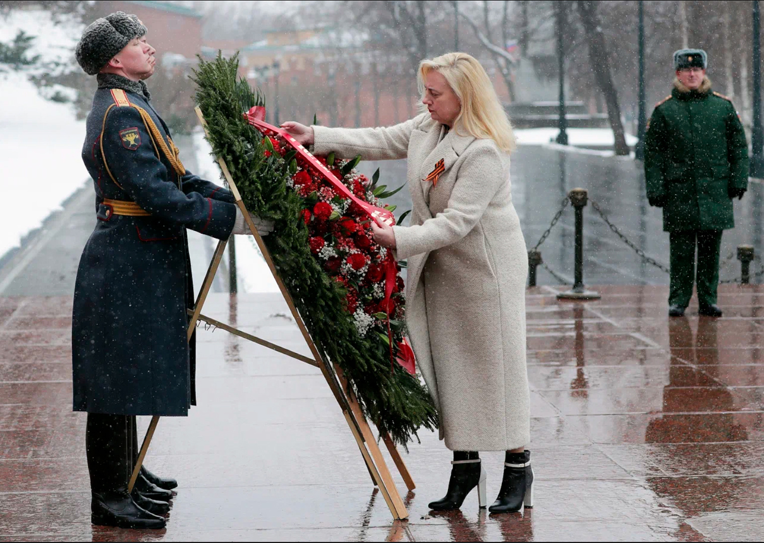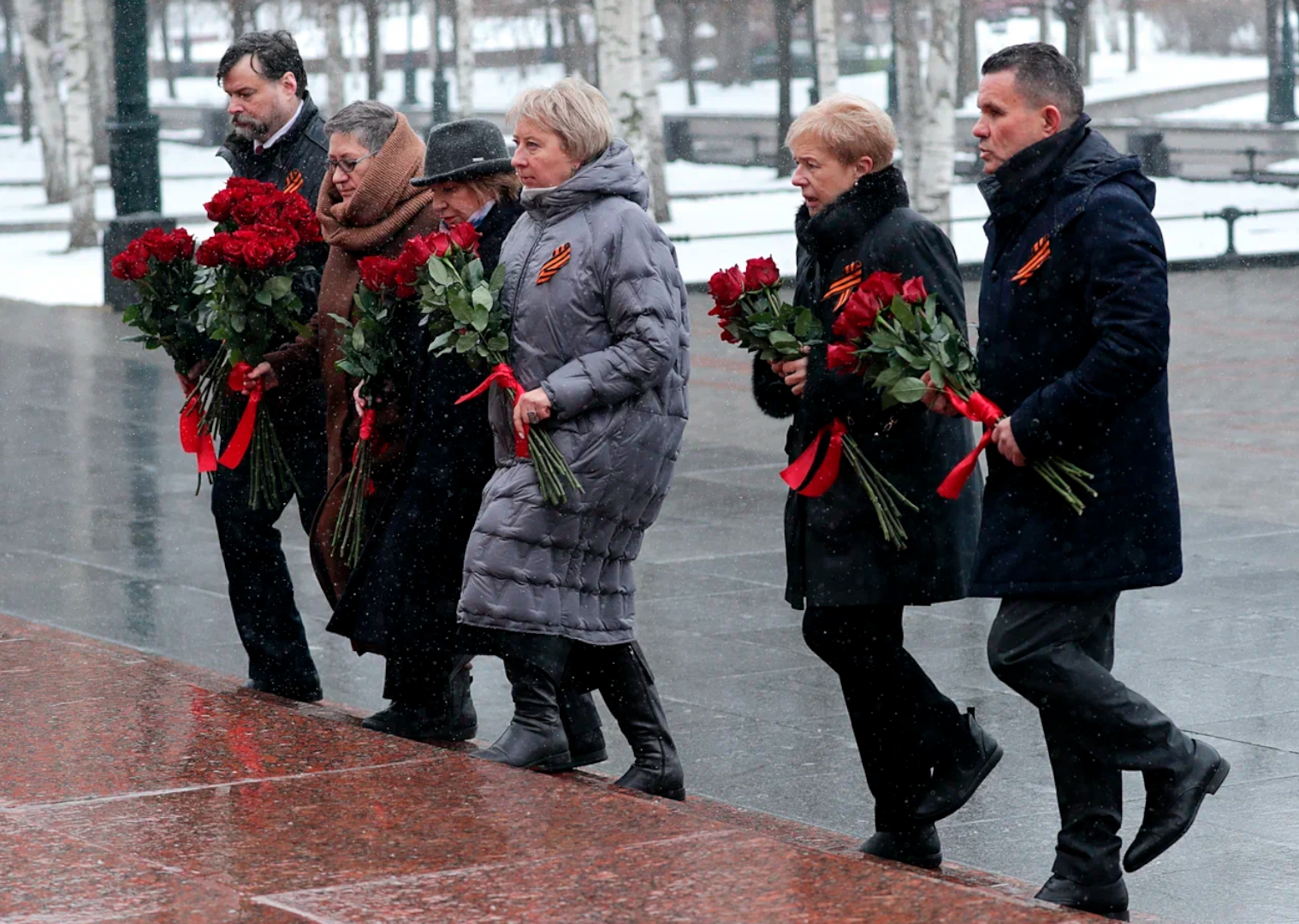В Александровском саду в преддверии Дня Победы делегация представителей федеральных библиотек во главе со статс-секретарем – заместителем Министра культуры Российской Федерации Жанной Алексеевой приняла участие в торжественной церемонии возложения венков и цветов к Могиле Неизвестного Солдата.
