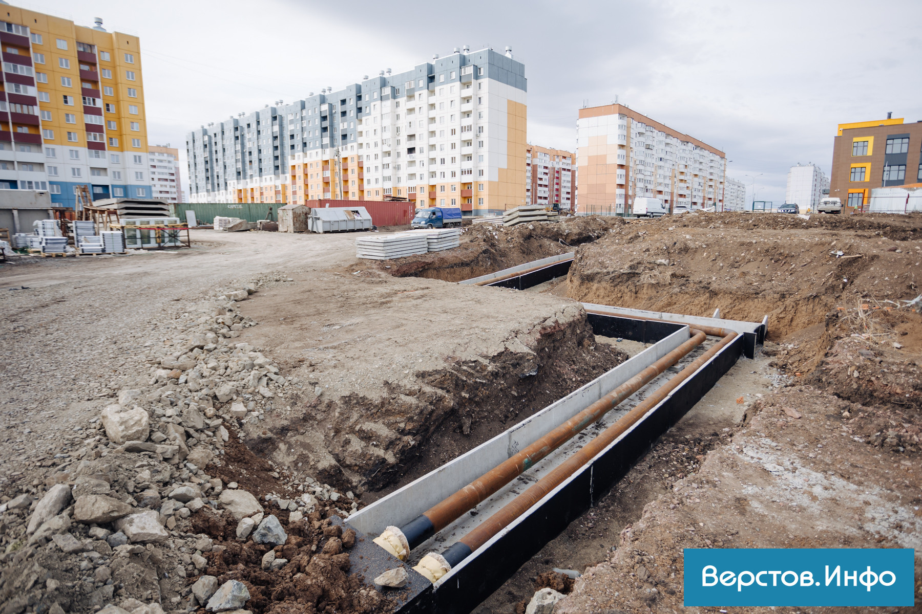 Новый участок теплотрассы пролегает рядом со зданием школы, которую планируют ввести в строй уже в этом году. Совсем рядом полным ходом идёт строительство многоквартирного дома, в планах застройщика возвести ещё несколько жилых многоэтажек.