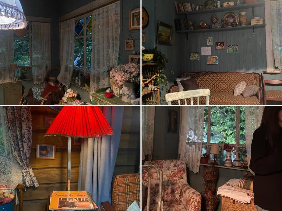 Образ основной локации (жилище главных инопланетных героев) выполнен в стиле настоящей русской деревни, с нуля воссозданы деревянные стены, русская печь, старая кухонная утварь: сахарницы, баночки под разные смеси, скатерть, книги. За окном — яблоневый сад, огород и цветник. Все фантазийное, но выполнено реалистично. За окном — баннер, приближенный к образу того места, где будут снимать, который делали помощью нейросети. Образ дома был придуман за один день, затем неделю создавались чертежи и еще неделю — эскизы. Возводилась основная локация около четырех недель, а следующие две недели команда декораторов занималась обустройством, приносила реквизит и занималась отделкой. В команде художника-постановщика 8 человек, а в строительной бригаде — 15.